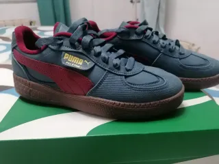 Zapatillas Puma Palermo en color azul y color burdeos. Detalles en tela vaquera. Espectaculares - Diseño clásico de Puma. - Suela de goma Si las ves, te las quedas. Envio rápido