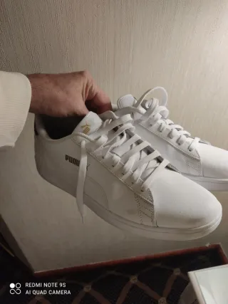 Vendo porque me quedan pequeños. Zapatillas deportivas Puma en talla 42. Combinan diseño moderno con comodidad. - Parte superior de malla transpirable. - Detalle de logo Puma en el lateral. - Cordones blancos para un ajuste seguro. - Suela de goma para mayor tracción.