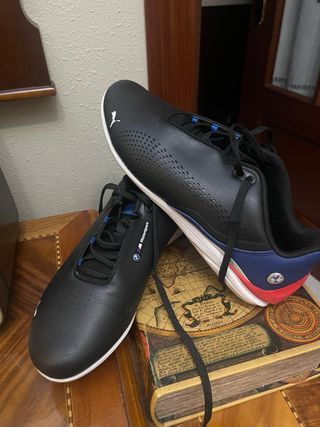 Zapatillas deportivas Puma con diseño inspirado en BMW Motorsport. - Color principal negro con detalles en azul y rojo. - Logo de Puma en el lateral. - Inscripción BMW Motorsport en el lateral.