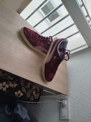 Zapatillas Puma Velophasis Untergrund en color beige y morado. Comprado en diciembre de 2024, un poco desgastado. Buen estado, pero tiene un par de piezas en el interior (en la foto).