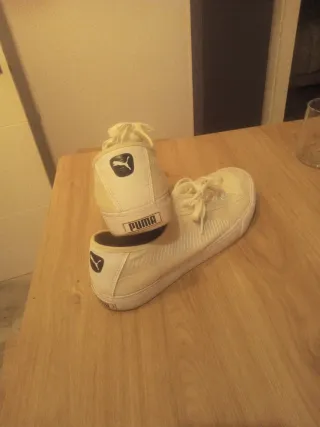 Zapatillas deportivas Puma de color blanco No han sido usadas porque son una talla equivocada y no puedo devolerla, esta en perfectas condiciones, comodas y combinan con todo.Cualquier pregunta no dudes en comentarmela.Envio rapido