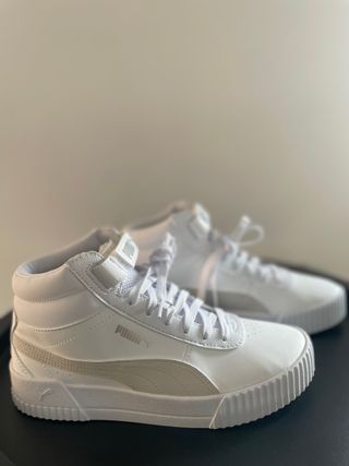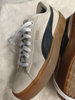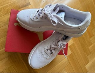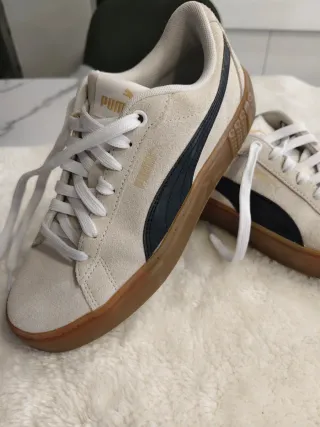 Zapatillas deportivas Puma de estilo casual. Compradas en Zalando. - Exterior de cuero blanco y detalles en ante beige. - Cierre con cordones. - Logo de Puma en la lengüeta y lateral.