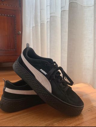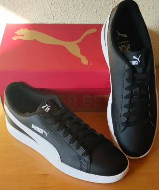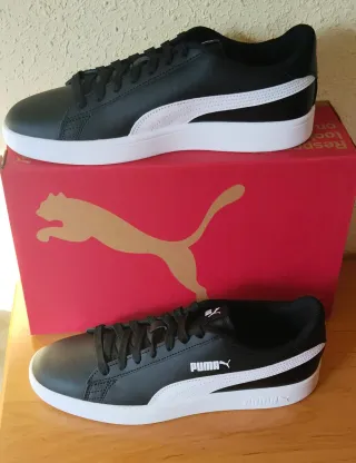 Deportivas hombre y mujer. Modelo Puma Smash. Talla 41. Color negro y blanco. Punta redondeada. Diseño inspirado en el tenis. Muy cómodas y ligeras. Ideal para todos los días. 🗣️ Pregunta sin compromiso. 📨 Envío rápido.
