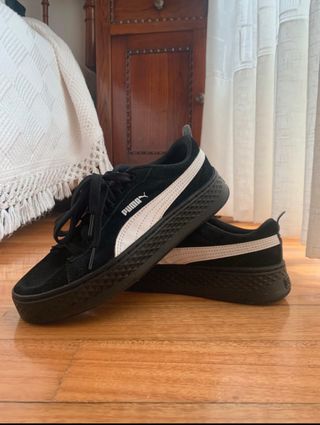 Zapatillas Puma de color negro con detalles blancos. - Diseño moderno y deportivo. - Materiales de calidad. - Suela gruesa y cómoda.