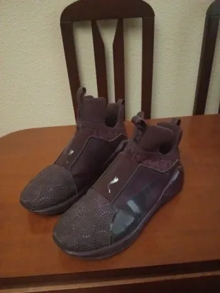Zapatillas deportivas Puma en color lila, perfectas para el día a día. - Diseño moderno y cómodo. - Logo de Puma en el lateral. - Viene con su caja original. Usadas una vez, así que están en perfecto estado.