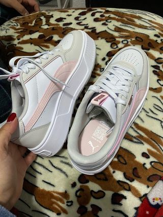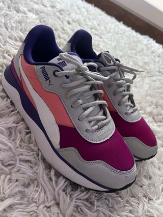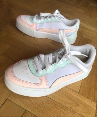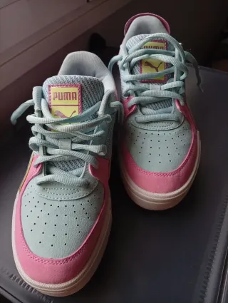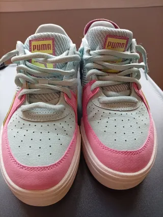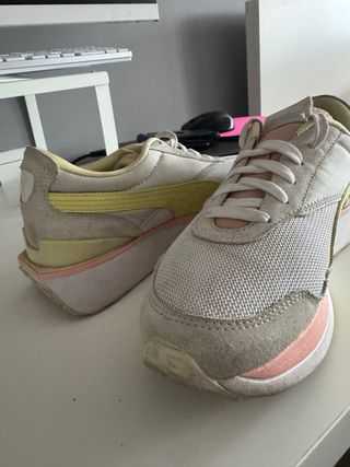 Zapatillas Puma de mujer en talla 38. Combinan tonos pastel para un look moderno. - Diseño deportivo y casual. - Materiales de calidad. - Perfecto estado solo hay que lavarlos.