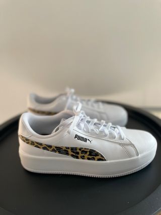 Zapatillas Puma originales, nuevas a estrenar en caja. Diseño blanco con detalle animal print en el lateral. ✔️ Talla 39 ✔️ Estado nuevo, nunca usadas ✔️ Con caja original ✔️ Plantilla SoftFoam, muy cómodas ✔️ Suela resistente con buen agarre.