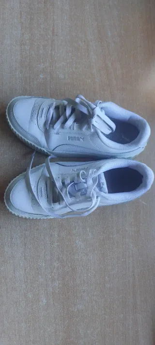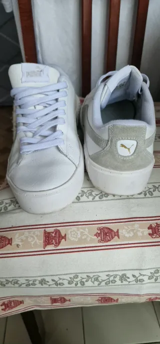 Zapatillas deportivas Puma de color blanco, talla 39 Perfectas para el día a día.tienen un pekeño descodido en el talon d ay s precio n sfecta para nada - Cierre con cordones. - Diseño clásico y versátil.