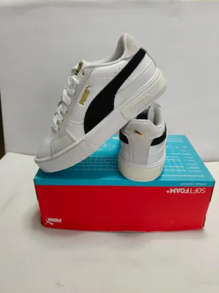 Zapatillas Puma Cali Star Mix de color blanco y logo negro con detalles dorado. Talla 36.....22.5cm