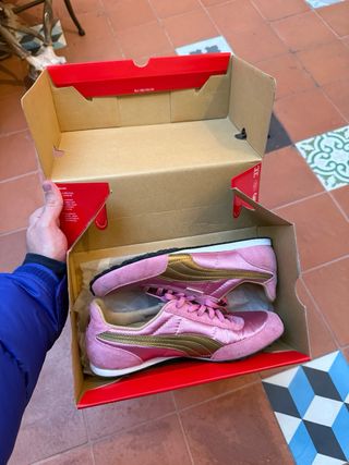 Zapatillas deportivas Puma con un diseño llamativo. - Color rosa metalizado. - Detalles en color dorado. - Cierre con cordones. - Conservo la caja original. - Número 37. - Están en perfecto estado, usadas muy pocas veces