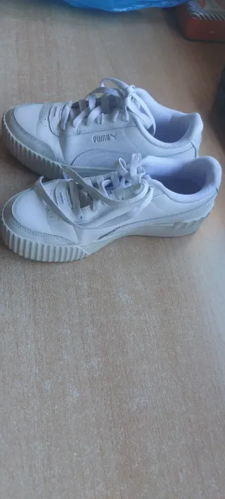 Zapatillas casuales Puma Bella Donna SD para mujer. - Diseño deportivo y moderno. - Combinación de colores marrón y blanco. Me lo regalaron para navidad, soy hombre y esa no es mi talla 😅. Cuestion la persona quien me lo regaló perdio el ticket y no puedo hacer el cambio, asi que estan nuevas sin usar. Vivo cerca de sagrada familia, tambien puedo desplazarme.
