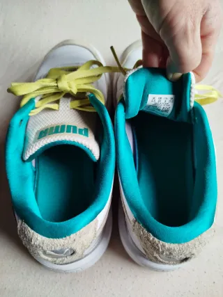 Preciosas zapatillas Puma para niña, talla 36. Están en muy buen estado, como se ve en fotos. Se usaron un par de meses y NO diariamente y se le quedaron pequeñas. - Diseño de colores pastel. - Muy cómodas - En perfecto estado. Talla 36