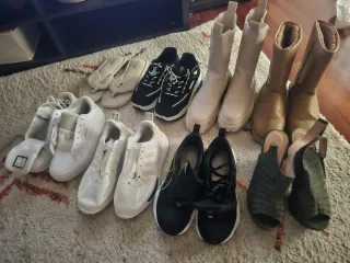 Todo lo que se ve en la foto.Está en perfecto estado hay cosas sin estrenar.Las notas marrones llevan pelito en el interior.Talla 38.Es el lote completo.No pedir por Correos porque hay que estar pendiente del peso.No tienen puestos los cordones porque están recién lavadas