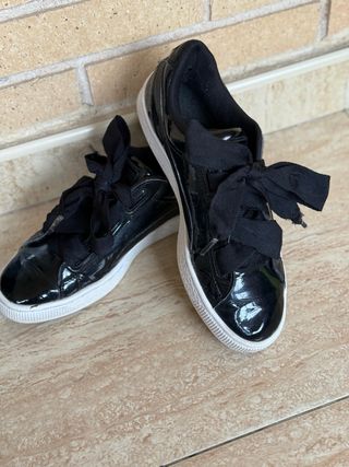 Zapatillas Puma de charol negro con cordones. En muy buen estado. Cómodo.