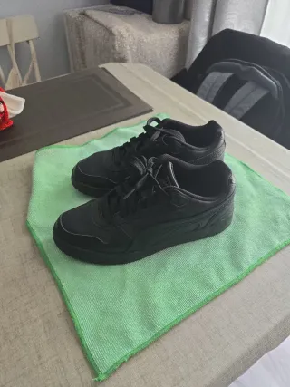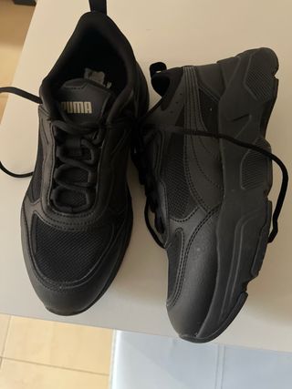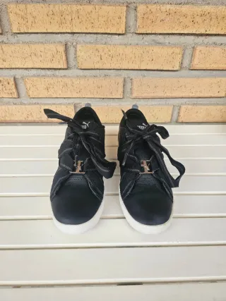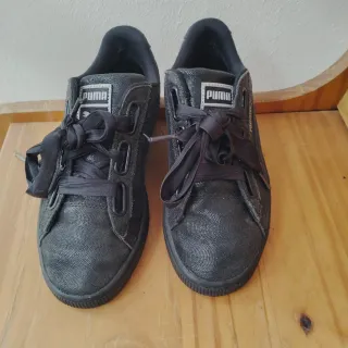 Zapatillas deportivas Puma en color negro. - Diseño clásico y versátil. - Cierre con cordones. - Logo de la marca en el lateral. Están muy conservadas solo usado un par de veces por tiempo y cambio de tamaño de pie.. Pues verlo sin compromiso