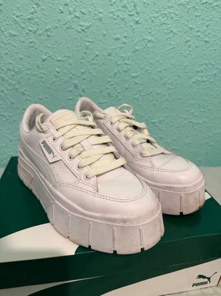 Zapatillas Puma Mayze Stack en color blanco. Usadas dos veces. - Diseño moderno y urbano. - Plataforma gruesa para un look actual. - Detalle de logo Puma en el lateral.