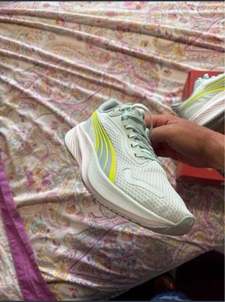 Vendo zapatillas Puma de mujer nuevas a estrenar, en color blanco/gris claro con detalles amarillo lima. Muy cómodas, ligeras y perfectas para diario, caminar, gimnasio o look casual/deportivo. Están sin uso, totalmente nuevas y en muy buen estado estético, tal y como se ve en las fotos. Marca: Puma Estado: Nuevas Color: blanco / gris claro / amarillo lima Incluye caja: sí Talla: 38 Entrega en mano o envío por Wallapop.