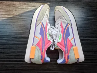 Zapatillas Puma Easy Rider en talla 41, a estrenar con caja. Combinan tonos rosas y azules con detalles blancos y suela de goma. - Cierre con cordones. - Diseño deportivo. - Incluye cordones adicionales.