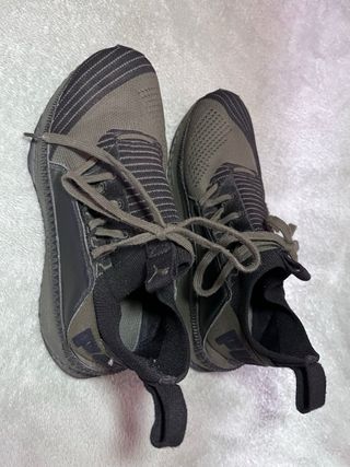 Zapatillas deportivas Puma con un diseño moderno y cómodo. - Combinación de colores negro y verde militar. - Suela con tecnología Ignite. - Cierre de cordones. Talla 37 (23 cm) SÓLO ENVÍOS