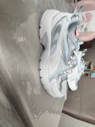 Zapatillas deportivas con un diseño moderno y detalles brillantes. - Combinación de blanco y plateado. - Materiales textiles y sintéticos. Puestas 2 ocasiones porque se le han quedado pequeñas