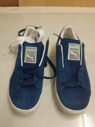 Zapatillas Puma Suede en color azul con detalles en beige. Nuevas sin estrenar. - Material de ante. - Cordones blancos. - Suela de goma.