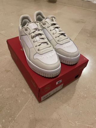 Zapatillas Puma Carina Street en tonos beige y blanco. Usadas en 4-5 ocasiones, me estan algo pequeñas y me hacen daño