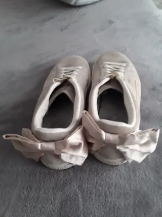 Bonitas zapatillas con un diseño encantador. Comparadas Corte Ingles - Recoger en Zaragoza. - Detalle de lazo satinado en la parte trasera. - Cordones blancos. - Suela de goma. - Usadas bien conservadas.