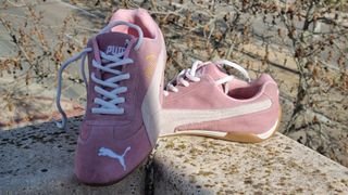 Zapatilla de la marca Puma en tonos beige y rosa. - Diseño moderno. - Detalles en contraste.