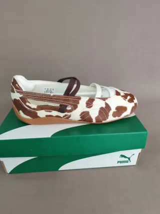 Zapatillas Puma Speedcat Ballet Cow Wns con un diseño único. - Estampado de vaca en tonos marrones y blancos. - Cierre con tiras. - Suela de goma.
