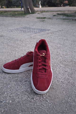 Zapatillas de ante Puma en color burdeos y detalles blancos. Perfectas para un look casual - PRECIO NEGOCIABLE!