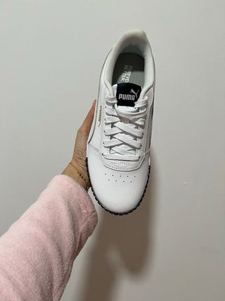 Zapatillas Puma Carina 2.0 con un diseño moderno y deportivo. - Combinación de colores blanco y negro. - Cierre con cordones para un ajuste seguro. - Suela de goma para mayor durabilidad.