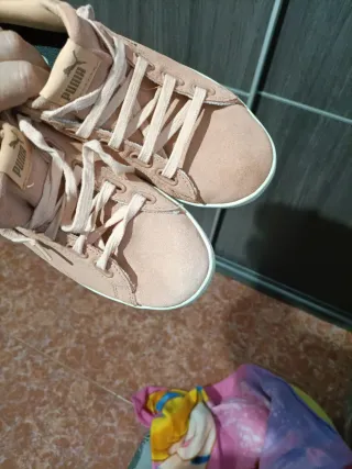 Zapatillas Puma de ante en color rosa palo, talla 40. Perfectas para el día a día. - Cierre con cordones. - Detalle de logo en la lengüeta. No me desplazo entrego en mano zona Carolinas altas no envío solo pago en efectivo no bizum