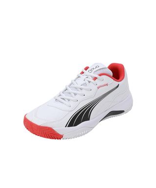 Zapatillas deportivas Puma Nova Smash en color blanco con detalles en rojo y negro. Perfectas para padel y tenis. - Diseño moderno y deportivo. - Combinación de colores vibrante. - Marca Puma icónica.