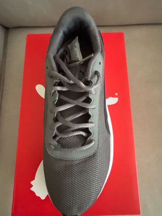 Zapatillas deportivas Puma originales. - Diseño en color gris con detalles en negro. - Cierre con cordones. - Suela blanca. - Viene con la caja original