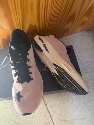 Zapatillas deportivas Puma Deviate Nitro 3, edición especial, sin estrenar. Puma x saysky Zapatillas con placa de carbono para media y larga distancia. Diseñadas para ofrecer rendimiento y estilo. - Color: Negro y rosa. - Logo de Puma en el lateral. - Suela con tecnología PUMAGRIP y PWRPLATE.
