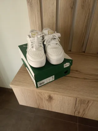 Zapatillas Puma de color blanco. - Diseño clásico y versátil. - Cierre con cordones. - Detalle de perforaciones en la puntera. Puestas solo un vez,las vendo porque me an operado la pierna