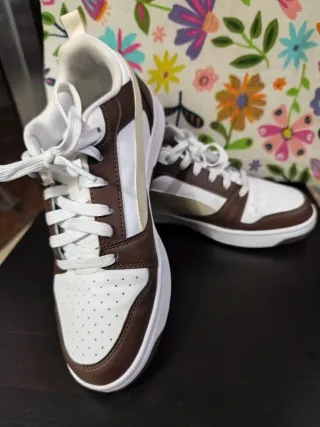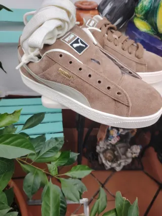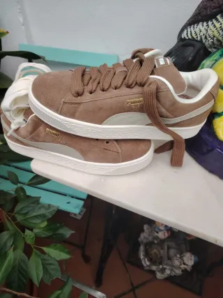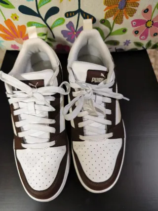 Zapatillas deportivas Puma del 40, unisex, con un diseño moderno y versátil. En perfecto estado, usadas un par de veces, las vendo porque se les han quedado pequeñas - Combinación de colores marrón y blanco. - Talla 40.