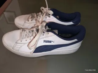 Zapatillas deportivas Puma sin estrenar solo para probar , con un diseño moderno y cómodo. Me quedan pequeñas, costo 39€. - Color azul marino con detalles en blanco. - Cierre con cordones.