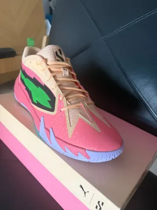 Zapatillas Puma con un diseño moderno y vibrante. - Combinación de colores llamativos. - Estilo deportivo y casual.