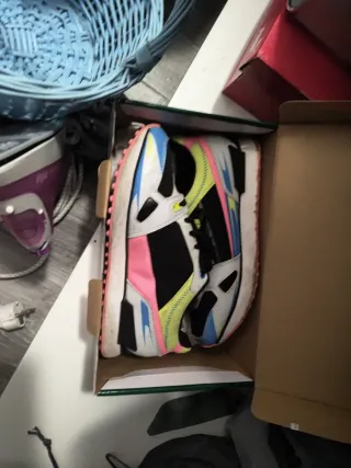 Talla 38 mujer (EU) — nuevas, solo probadas, con caja y extras Fenty ✅ Nuevas, sin usar (solo probadas, no quedó la talla) 📦 Incluye caja original 🖤 Bolso Fenty de terciopelo negro original 👟 Cordones Fenty blancos extra incluidos Modelo exclusivo y difícil de encontrar. Perfectas para colección o uso diario con estilo único. 💶 Precio: 50 € 👉 Acepto ofertas razonables 📍 Envío por Wallapop o entrega en mano según zona.