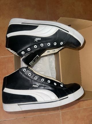 Zapatillas deportivas altas de la marca Puma. -Talla 38.5 - Diseño con paneles en blanco, negro y rojo. - Cierre de cordones blancos. - Detalle del logo Puma en el lateral.