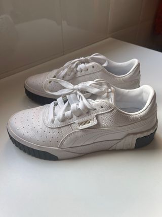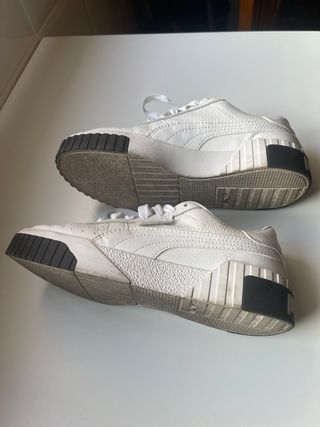 Zapatillas Puma Cali Dream RE:Collection en color blanco. Tienen muy poco uso, están en perfecto estado. - Detalle de costuras visibles. - Suela gruesa y robusta. - Logo de Puma en la parte lateral.