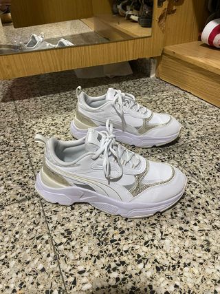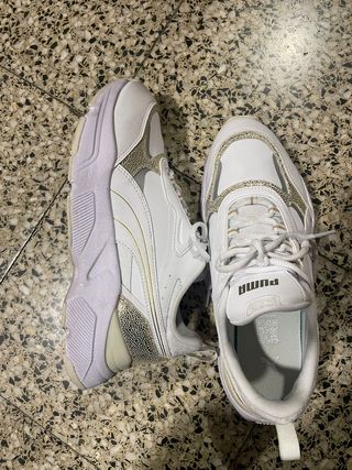 Zapatillas deportivas Puma en color blanco con detalles dorados. Solo usadas un par de veces, están nuevas. Súper cómodas.