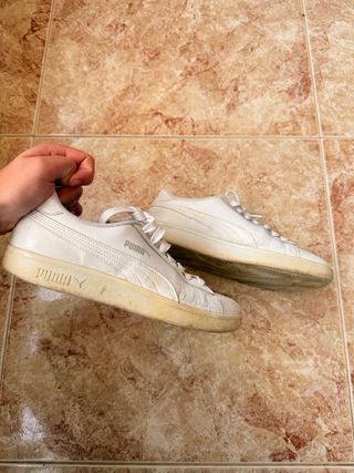 Zapatillas Puma Cilia en color blanco. Como nuevas, solo se usaron una vez y al rasparme el tobillo le quedó esa pequeña mancha en la parte trasera. 100% originales y en caja original.