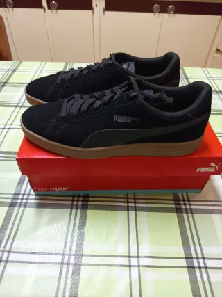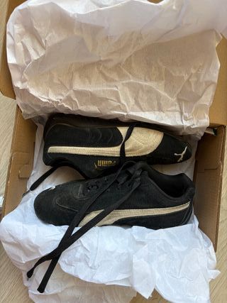 Zapatillas Puma de ante en color negro con detalles en marrón. -Usadas una sola vez,como nuevas. - Cierre con cordones. - Suela de goma. - Logo de Puma en el lateral.