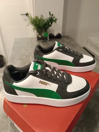 Zapatillas Puma Caven con un diseño moderno y deportivo. - Combinación de colores blanco y verde. - Detalles en gris oscuro. - Logo de Puma en el lateral.