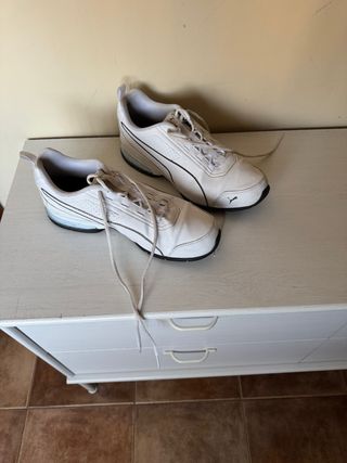 Zapatillas Puma en excelente estado, usadas solo dos veces. - Diseño moderno y deportivo. - Combinación de malla y materiales sintéticos. - Suela blanca con detalles en negro. - Logo de Puma en el lateral.