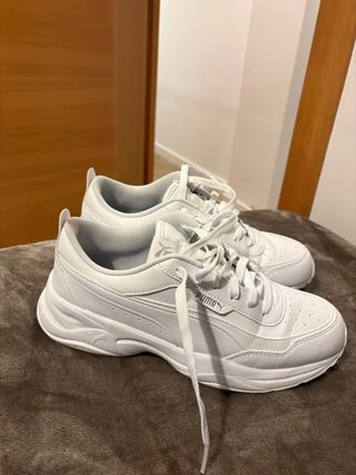 Zapatillas Puma de color blanco, talla 40. Se entregan con su caja original. - Diseño clásico y versátil. - Logo de la marca en el lateral y la lengüeta.
