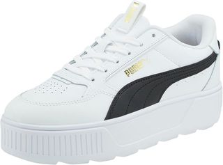 Zapatillas deportivas Puma de mujer en color blanco y suela con detalles en negro. - Diseño clásico y versátil. - Cierre con cordones. - Detalle del logo Puma en dorado.