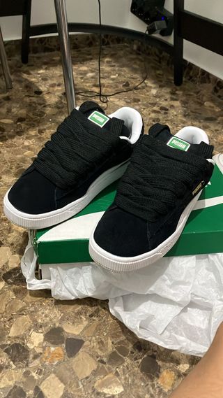 Zapatillas Puma Suede XL en talla 42. Combinan negro y blanco. - Diseño clásico Suede. - Detalle de franja característica de Puma.